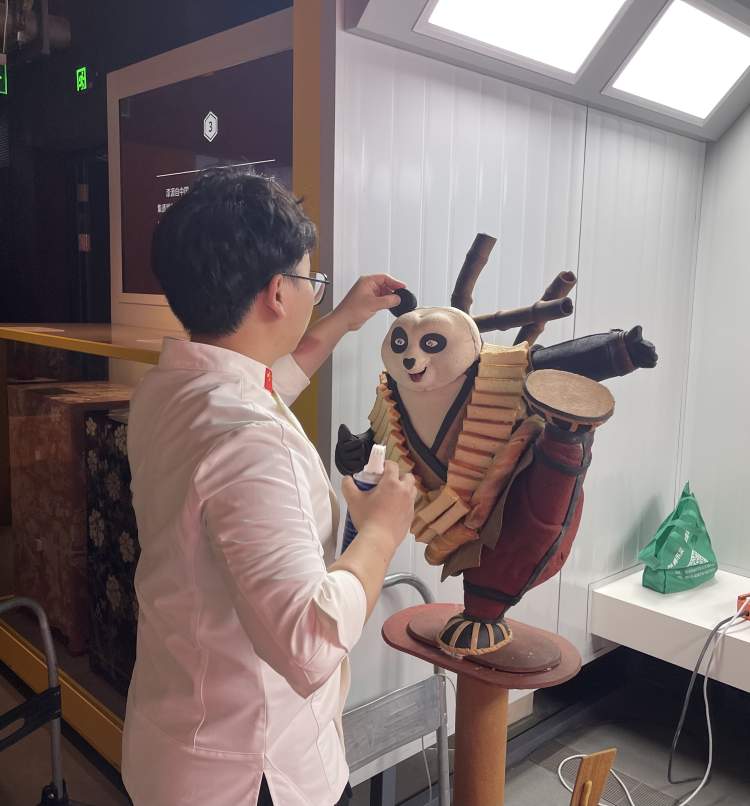 期间阵阵焦香吸引来好几批馆内的工人,几个月后待世界技能博物馆正式对外开放,相信这个展柜一定会引来更多惊喜好奇的目光,吸引更多公众驻足打量。小朋友会不会忍不住“舔屏”,猜想这只完全由面包做成的“功夫熊猫”到底是什么味道的呀?
