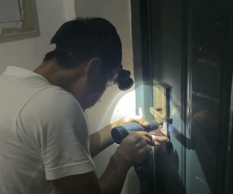锁匠到场后多次尝试技术开锁均以失败告终,此时距离老黄失联已经过了3小时。民警当机立断让锁匠破锁而入。