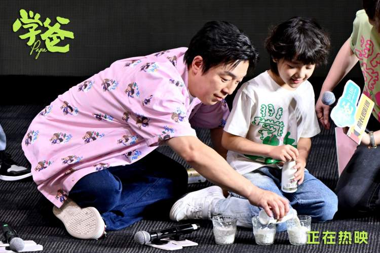 在《学爸》上海首映礼上,主创们与现场观众分享幕后故事,因天气原因未能到场的万茜也以连线方式向对观众表达了感谢,并以“火嫂”的口吻叮嘱“火哥”在现场要好好表现。