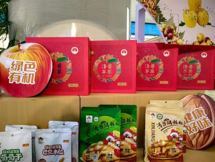 在泽普农产品集市上,还有冻干苹果、苹果果酱这些泽普苹果的“周边”。