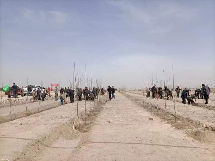 2020年开始,我们四处走访、调研,发现了适合种在戈壁滩上的新品种水果,它的特点是根系特别发达,耐干性强,果树属于矮株品种。引进新品种的同时,还能提高采摘的效率,人站在树下就能摘果子了。