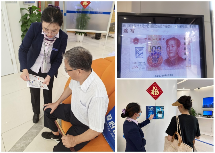 厦门国际银行上海分行充分利用支行网点优势,以营业厅堂为阵地,深化支付清算行业防范电信网络诈骗宣传效果,该行制作下发《防范电信网络诈骗宣传手册(2023版)》宣传手册、“全面反诈在行动”主题海报及国家反诈中心反诈海报等各类宣传材料,电子屏幕滚动播放反电诈防骗标语及宣传短片,在网点显著位置张贴宣传海报,为到店客户发放宣传折页,向前来网点办理业务的客户普及《反电信网络诈骗法》相关知识,开展“全面反诈在行动”主题宣教,提升客户防骗意识。