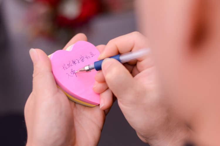 不少新人选择了舒婷的《致橡树》、以及十分应景的《鹊桥仙·纤云弄巧》,也有新人选择创作三行诗。“我想要的幸福/就是和你/一起看世界”新人认真写下自己的三行诗,94年的小俞现场创作后动情表白,也感染了现场其他新人,引来掌声一片。