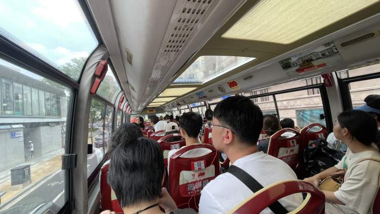 不过座位仍然很紧张——上车后,大多数人都直冲巴士2楼,不多会儿,二楼“景观座”50个人的座位全都坐满了!