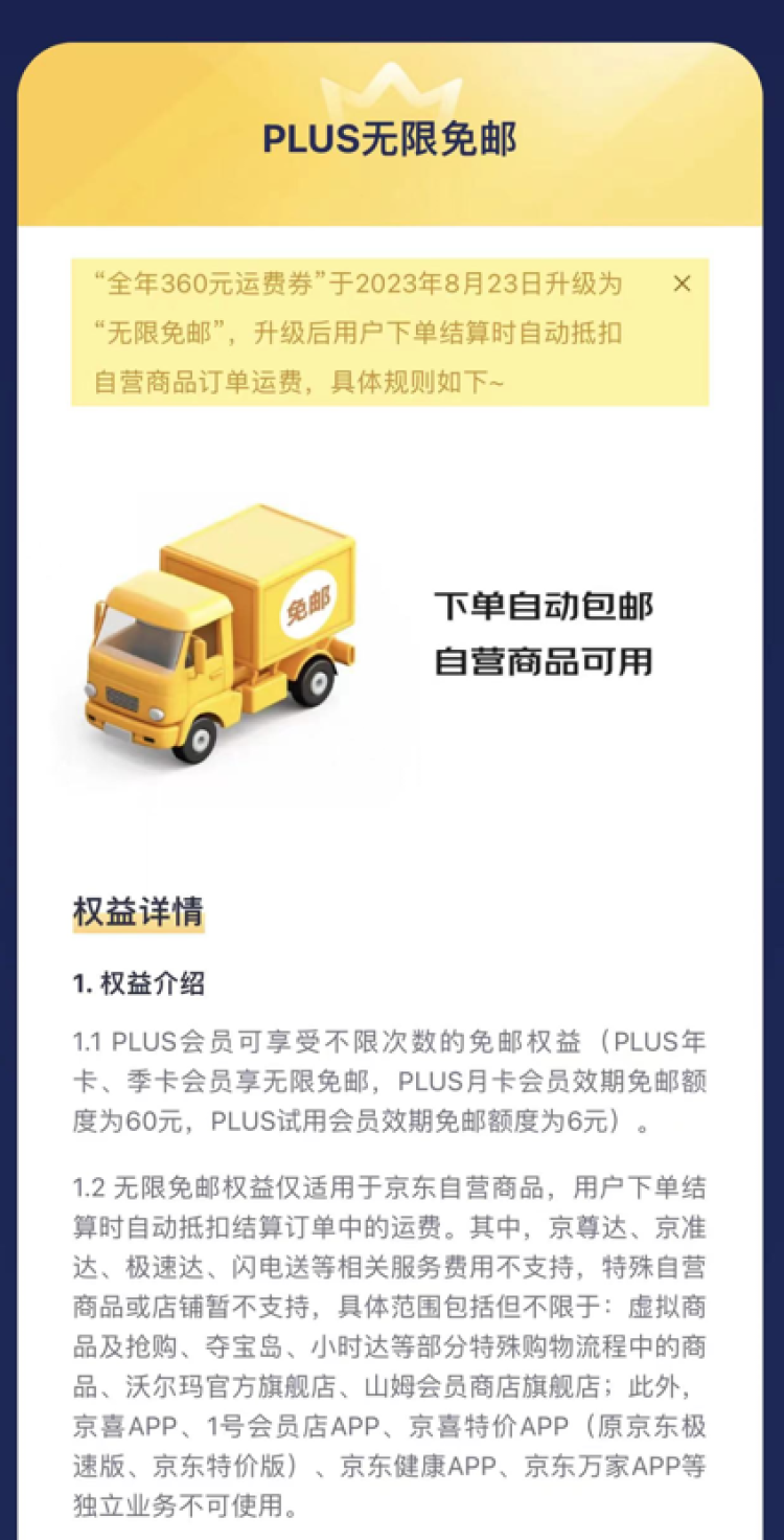 下调自营免邮门槛 PLUS会员全年无限免邮