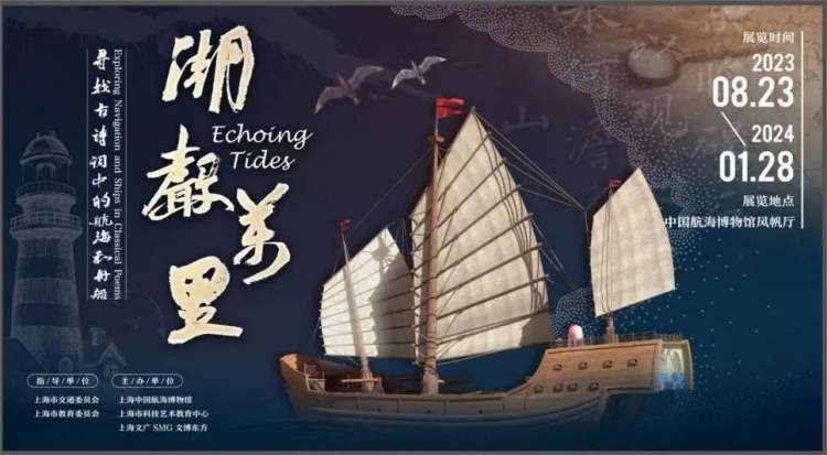 “潮声万里——寻找古诗词中的航海和舟船”由中国航海博物馆在上海市交通委员会、上海市教育委员会的指导下,联合市科技艺术教育中心、上海文广SMG文博东方等共同推出,展览旨在展现人类在航海和舟船方面的多元视角和情感表达,推行航海文化视野下的博雅教育。