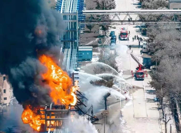 得知现场爆炸情况,他第一时间通过电台提醒战斗员落实安全防护。抵达现场后,又主动请缨带领攻坚组前往着火点架设移动炮,冷却受火势影响的罐区。