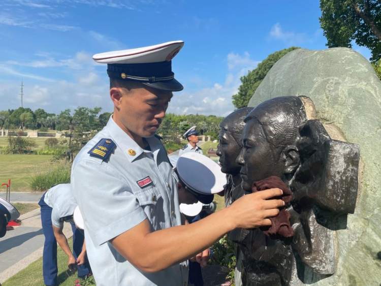 ▲擦拭史建华烈士的雕塑