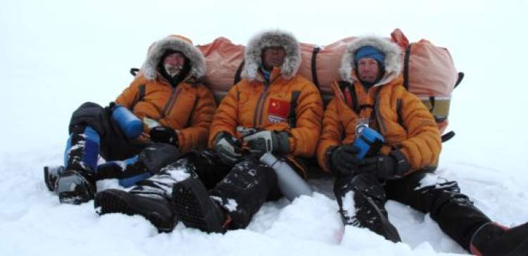 2010年,刘冬生(中)与美国人埃里克-拉尔森(向导)、加拿大人威廉-汉隆在南极
