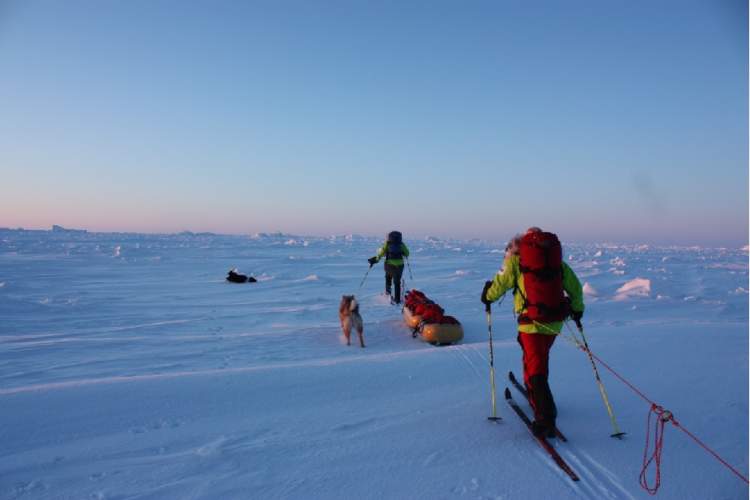 他们从俄罗斯共青团岛最北端启程,开启了在北极浮冰上徒步的漫长挑战,且是在完全没有机器或狗的帮助下。在他们脚下,是4000米深的北冰洋。