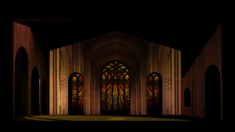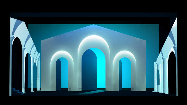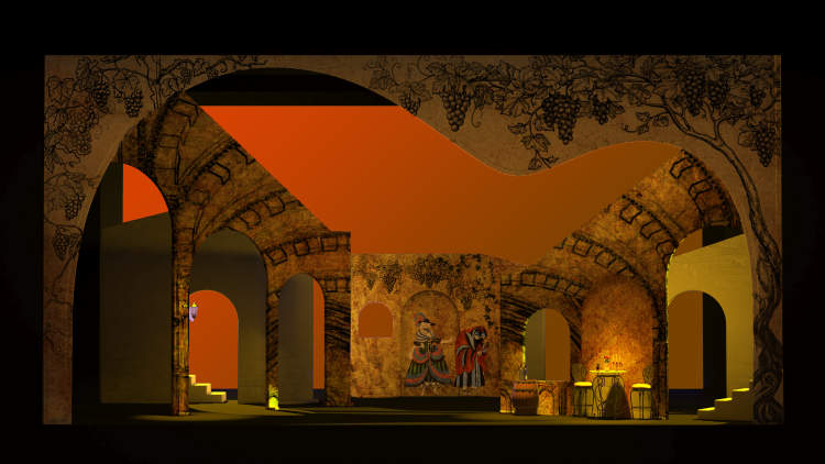 为了展现人物内心丰富的变化,舞台灯光也起到了至关重要的作用。第一幕,观众将会通过灯光的牵引,顺着大角度光位与舞美结构勾勒出的西班牙门廊,跟随主人公打开一扇扇探索之门,感受光影的流动、晕染以及点缀其中的西班牙花窗GOBO片,陶醉在一个绚丽多彩、奔放欢快的西班牙国度。