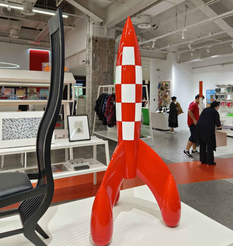 《丁丁历险记》大火箭模型,上海当代艺术博物馆“对对对”书店