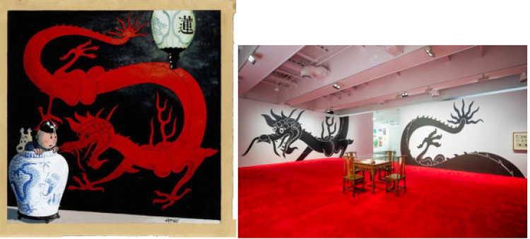 《蓝莲花》以张充仁为原型的“中国张”形象,2021年8月《丁丁与埃尔热》展中的《蓝莲花》元素