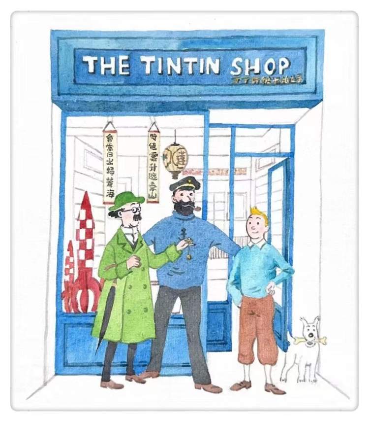 丁丁与船长、教授来到丁丁上海店 (萧小茉创作)
