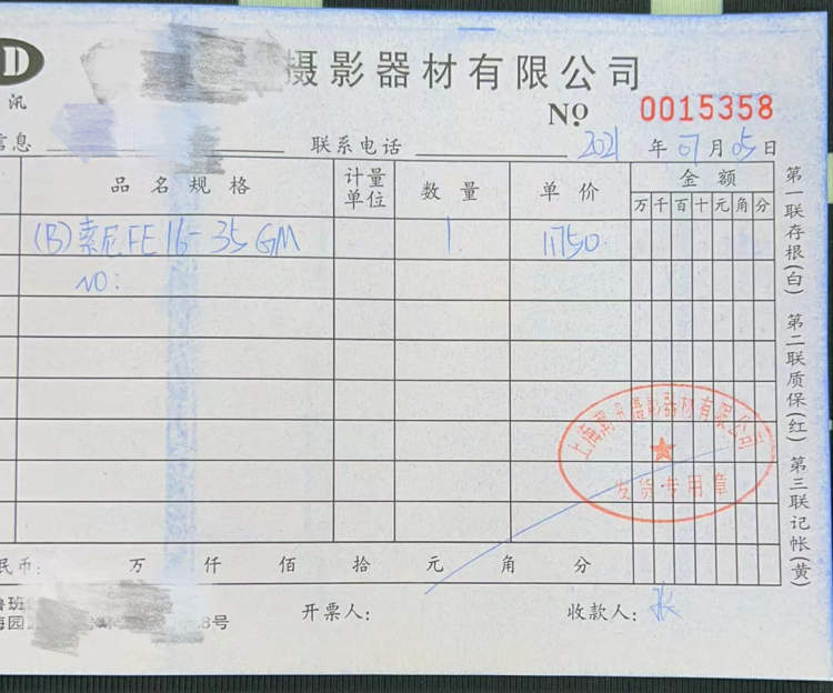 镜头是1.1万元买的,监视器也花了1万多元,这在二手市场也是这个价,光这两样就2万多元了。”