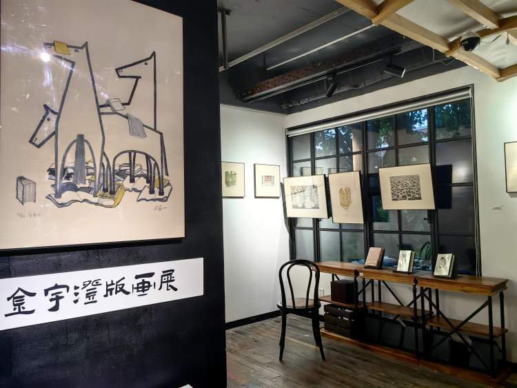 二楼楼梯口,金宇澄版画展和郭文媛孤岛时期插画个展也在进行中。