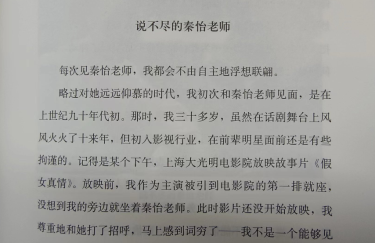 《独坐》当中《说不尽的秦怡老师》节选,奚美娟与秦怡老师的合影图片