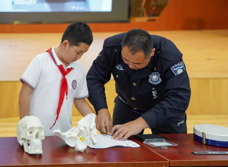在老师的讲解下,同学们了解到刑警能够通过毛发、皮肤、骨头、血液、指纹、伤口等现场任何细微事物,来分析、判断死者的情况与死因,提取破案定案的关键证据。