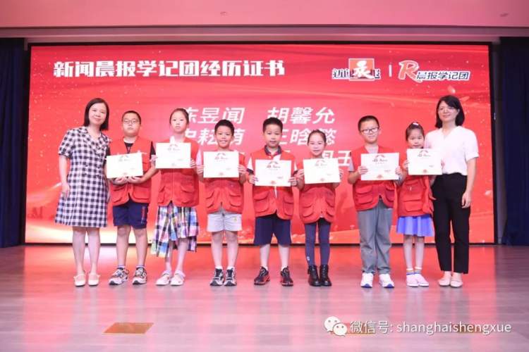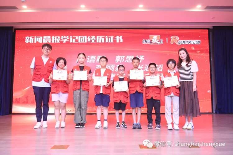 昨天的开学礼上,既有新加入的小记者,也有在学记团已经度过一两个学期,甚至几个学年的“老”记者。新闻晨报副主编秦岭和新闻晨报教育发展中心主任吴家萱,以及其他几位学记团导师为他们颁发了2022学年的经历证书。