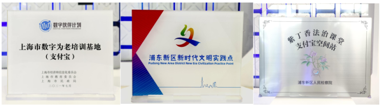 目前,支付宝空间站已被授予“上海市数字为老培训基地”“浦东新区新时代文明实践点”“紫丁⾹法治课堂”、2022年度十佳志愿服务项目、南方周末2022筑梦者公益大会-年度创新案例、2022年度“创新,创优”浦东新区新时代文明实践示范点等荣誉称号。