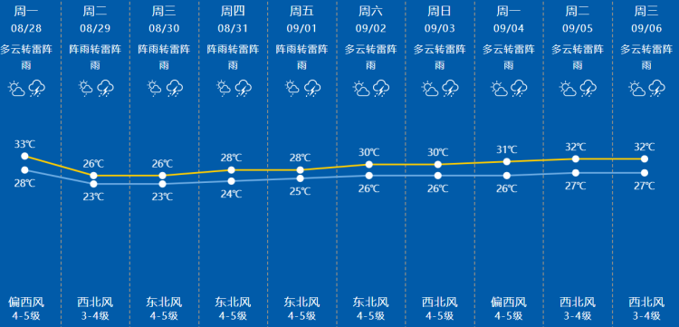 受冷空气和雨水的影响,气温会随之降低,本月底最高气温保持在26~28℃。