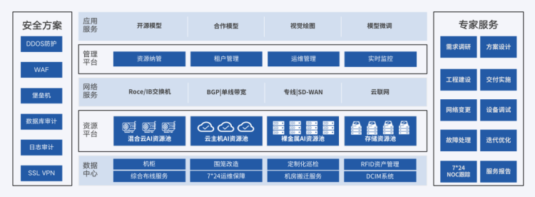 基于高电算力集群专区、冷热分离的存储系统、IB/RoCE高速网络等,优刻得还构建了大模型产业发展和应用的“数字底座”,支撑大模型训练、推理、数据处理等算力需求。