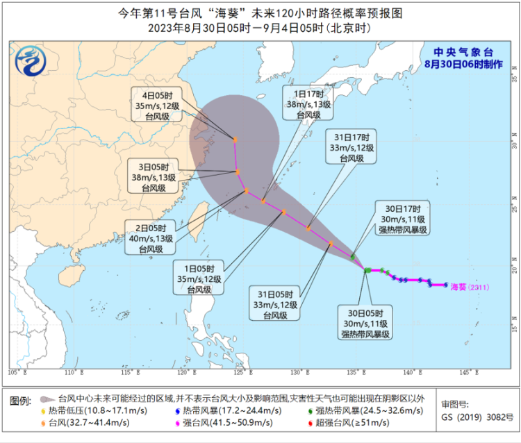 今年第11号台风“海葵”也已升级为强热带风暴级,今晨5时位于美国关岛西北方向约1180公里的西北太平洋洋面上,中心附近最大风力有11级(30米/秒)。预计将以每小时15公里左右的速度向西北方向移动,强度逐渐增强。
