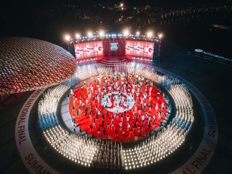 夜幕四合,热力不减。见证全国总冠军诞生之后,精彩的喷泉水秀呼应夏日运动热情,为冠军队伍喝彩。接着,马赛克乐队以三首代表作助推今夏热情,由门店大使领衔的乐舞派对将氛围推至高潮。