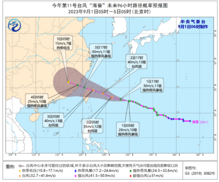 图4 今年第11号台风“海葵”未来96小时路径概率预报图