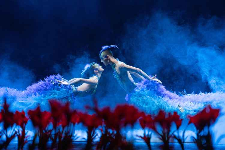 “孔雀”是著名舞蹈艺术家杨丽萍塑造的经典舞台形象。2022版舞剧《孔雀》汇集了杨丽萍多年的积淀与思辨,邀请“零零后”年轻舞者王思龙、肖蓉浩来饰演剧中主角——一对年轻的男、女“孔雀”。自去年9月开始全国巡演,至今演出超过20个城市,多达百余场。