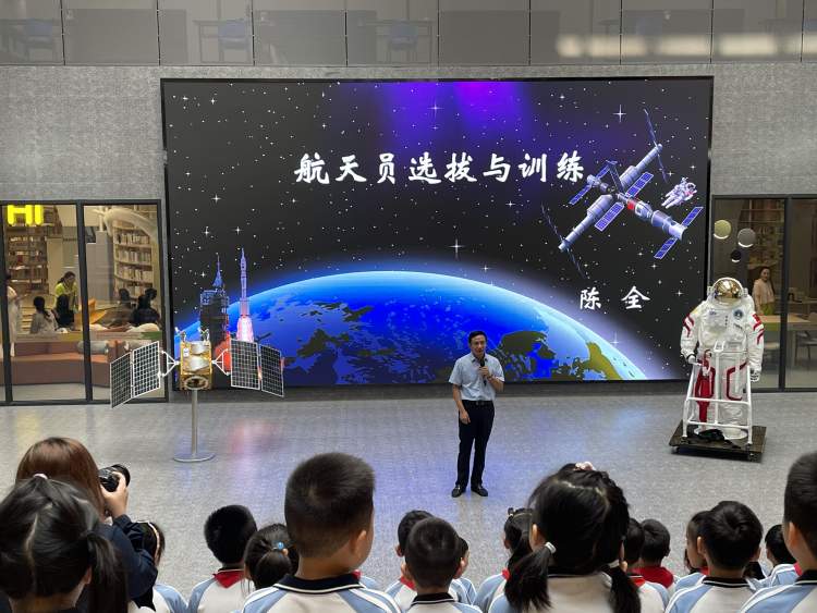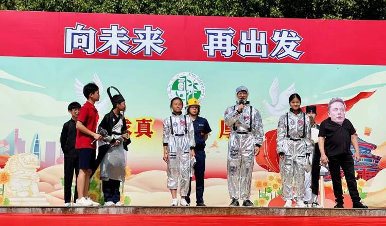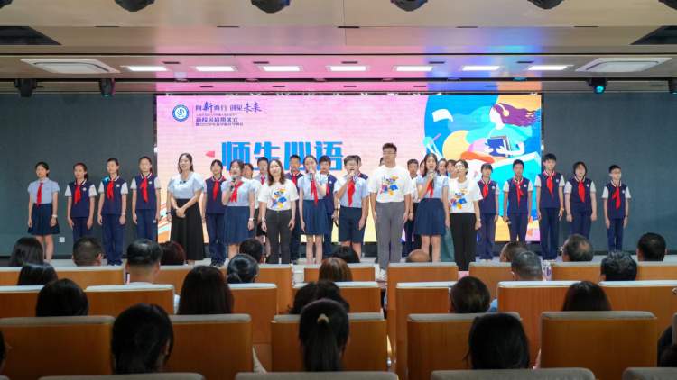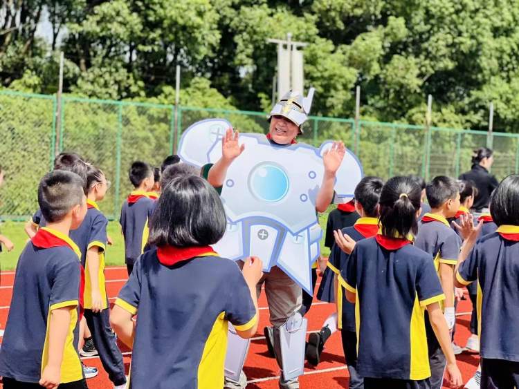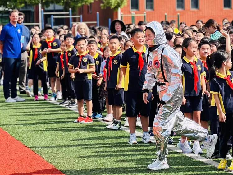 伴随着五星红旗冉冉升起,典礼在众人瞩目中拉开了序幕。首先由校“小海豚”红领巾宣讲团的金牌讲解员深情讲述中华民族团结进步、勇于创新的好故事,传播中国好声音。随后,校长张莹晶送上新学期寄语,她提出面对新学期新挑战,要勇敢面对、坚持努力,学会合作、互相帮助,共同进步。她期待每位上外普陀实验学子在未来的日子里,以航天英雄为榜样,珍惜时光立大志,克服困难攀高峰,为成为未来国之栋梁之才而不断赋能!