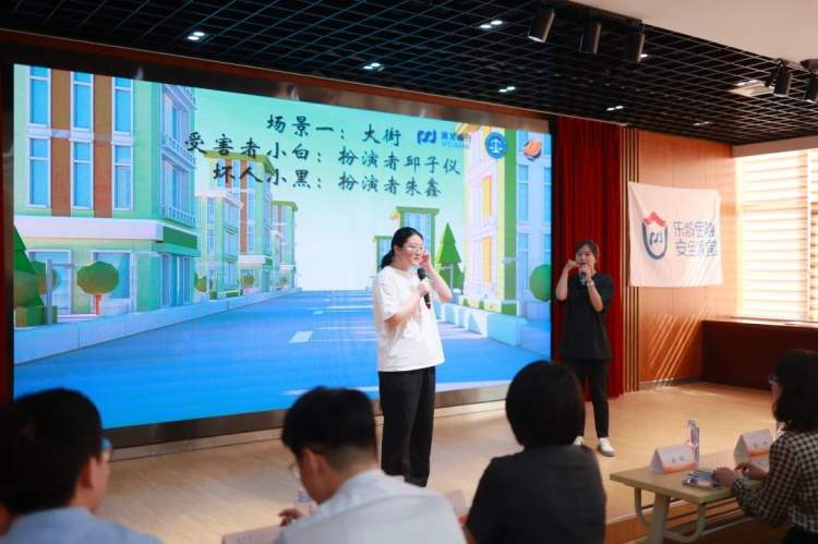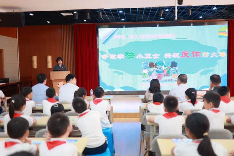 贺美娟副庭长也来到活动现场,对反诈宣教内容进行了延伸,开展了一场《争做学法小卫士,共筑反诈防火墙》的反诈普法微课堂。通过身边的实际案例分享,提醒同学们“不听不信不转账、学法用法不上当”。