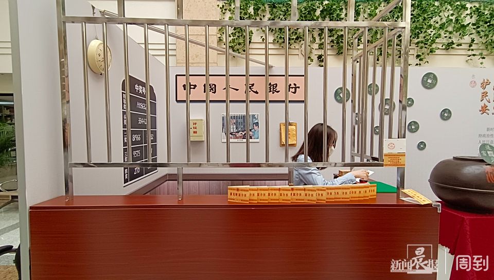 展厅一角,一座上世纪80年代中国人民银行的储蓄所场景,带着浓郁的怀旧复古风呈现观众眼中,十分吸睛。储蓄所真实还原早期银行式样,陈列着数十件当年人民银行使用的算盘、账页、存折和各类办公用品。