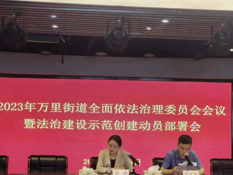 6月15日上午,万里街道召开全面依法治理委员会会议暨法治建设示范创建动员部署会,罗艳书记做动员讲部署,指出要做好三个保障: