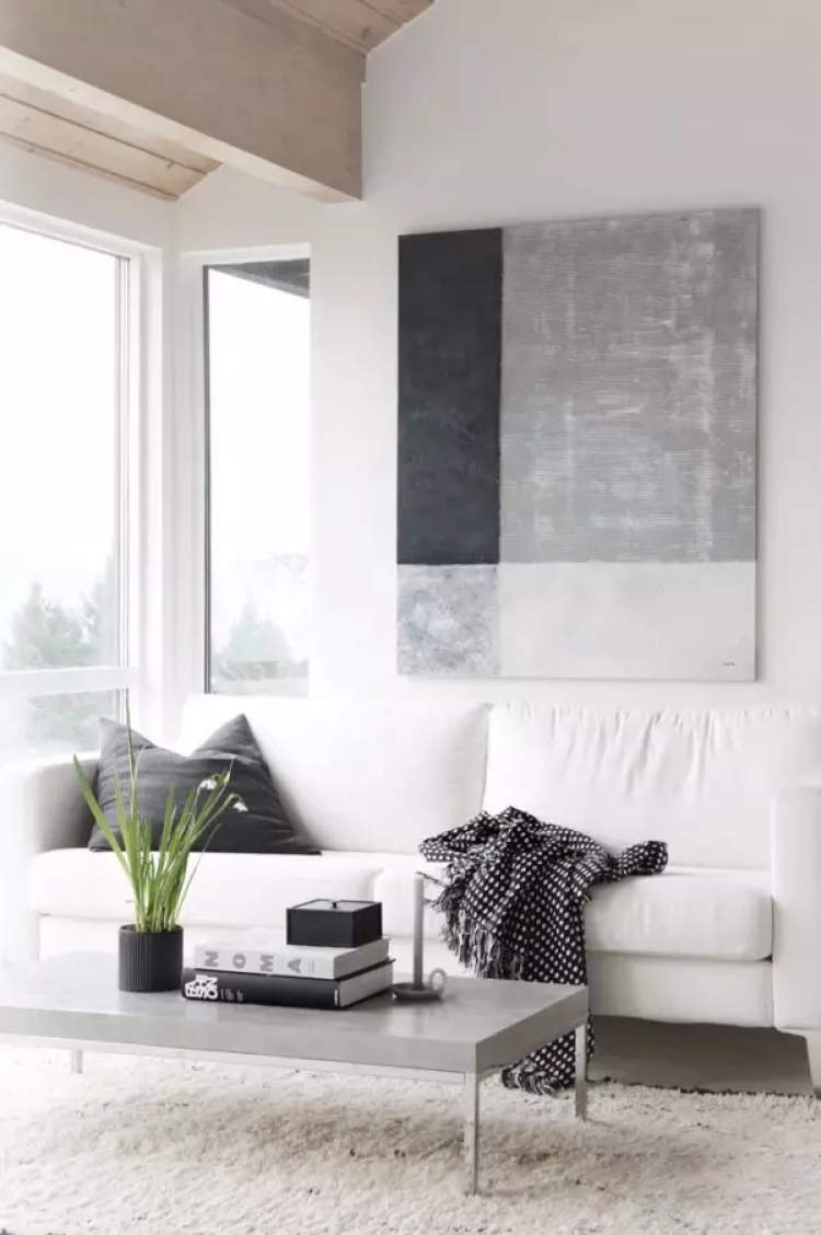 第二、家里是中式装修的话,可以配国画;极简装修可以配抽象画,如果客厅里视觉元素本来就较多较杂的话,墙面不如空着,视觉反而更好。