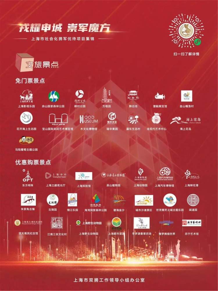 上影股份旗下全市影院提供低于门市价5折优惠;钟书阁全国门店购书8.1折优惠;还有兰生影院、沪北影院、太平洋影院松江店、酋鹿体育、刚锋武术;宝山、普陀、南汇、三林体育中心、真如体育场、曹杨游泳池、渔书、元祖梦世界、城隍庙等文体服务场所提供拥军专属优惠。