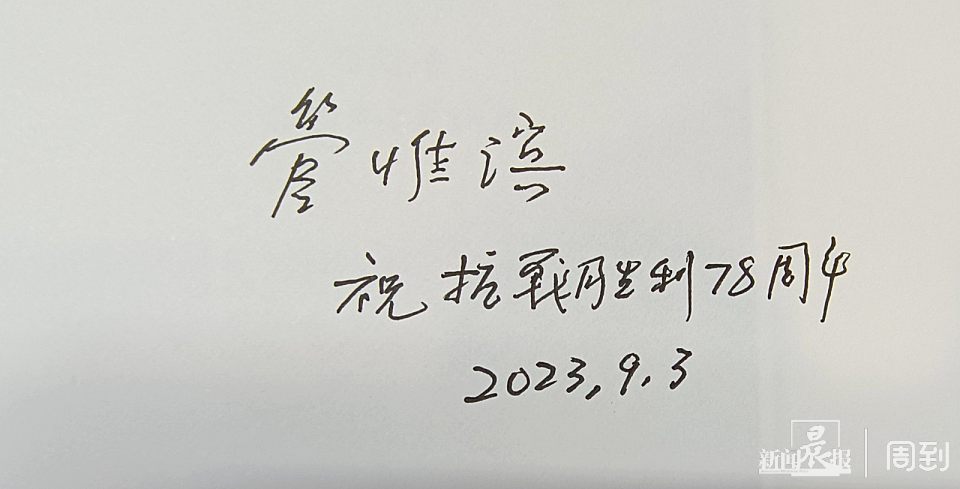 在座谈会现场,管惟滨老人在《给青少年讲新四军老战士的故事》新书上为新闻晨报·周到读者亲笔题字“祝抗战胜利78周年”。让我们向这位新四军老战士致敬!