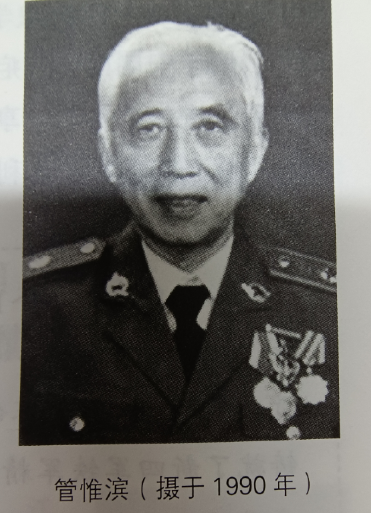 在座谈会上,今年93岁高龄的新四军老战士管惟滨做了致辞和介绍。管惟滨1930年出生于如皋县掘港镇(现属江苏如东县),家境殷实,在兄弟三人中排行第二。管氏在当地是个大家族,是管仲的后裔。到管惟滨这代,是管仲的第79代传人。管惟滨的父亲高中文化程度,20世纪20年代开了一间机米油坊,做食用油生意。