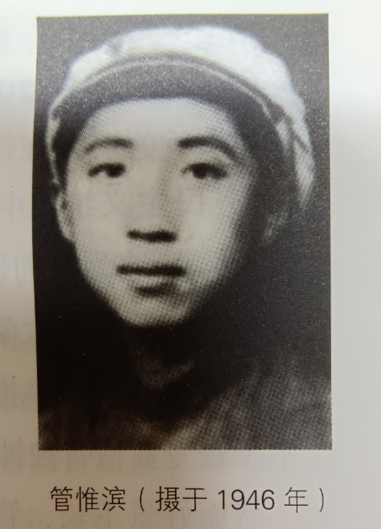 1945年6月,年仅15岁的管惟滨参加了中共地下工作队。白天,他在如东中学读书,晚上在镇里开展青年工作。1945年8月,新四军收复了掘港,地下工作队可以公开活动。1945年10月,管惟滨被吸收入党,当时有三四位同志一起参加入党宣誓。