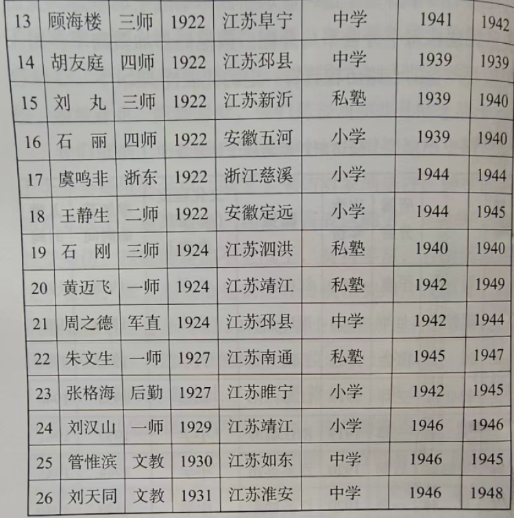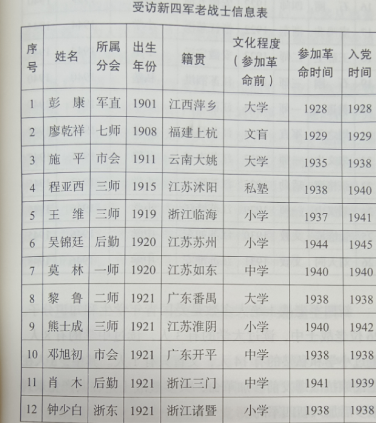 受访新四军老战士信息表(26位)