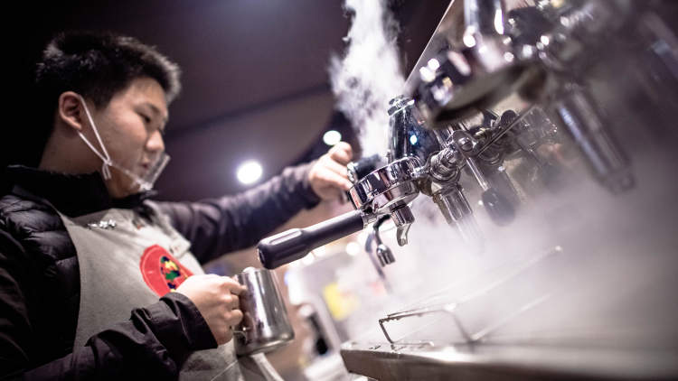 位于上海市青少年活动中心一层的“爱咖啡”实践基地,咖啡师是孤独症青少年,他们系着咖啡师围裙,分工明确,有的制作咖啡,有的端着咖啡送到“顾客”面前。