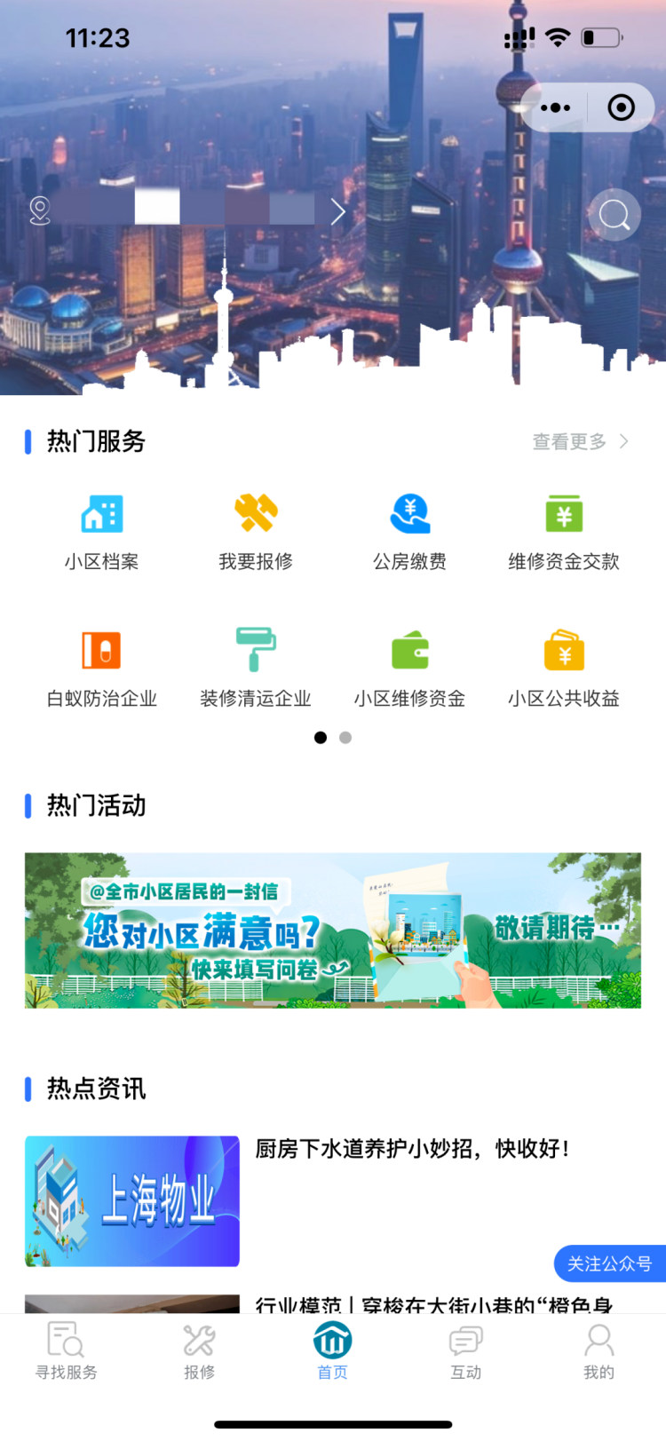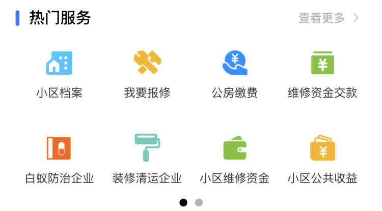 △热门服务包括“我要报修”“公房缴费”“维修资金交款”“小区维修资金”等丨截图自“上海物业”小程序