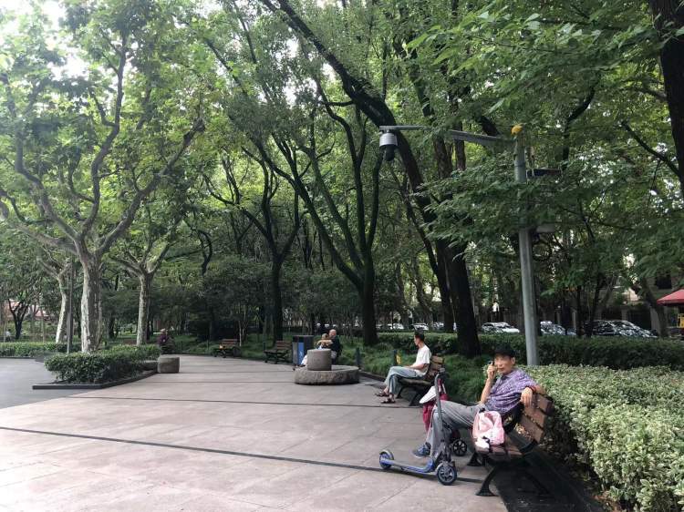 椅面比较合适的是徐家汇公园里一款有靠背的木质长椅,在公园里十分普遍,高度42厘米左右,成年人整个屁股坐上去,背靠在椅子上,双脚能着地。“这个椅子蛮舒服的,头顶都是遮阴的大树,我们在这里经常要坐一两个小时了。”在靠近衡山路、宛平路的公园小广场,老人们表示。