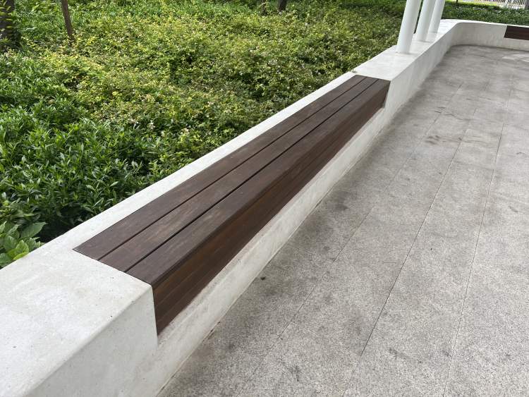 丽波·水漾花园的座椅高度略高,但座椅下方花坛向内倾斜,考虑到了舒适度