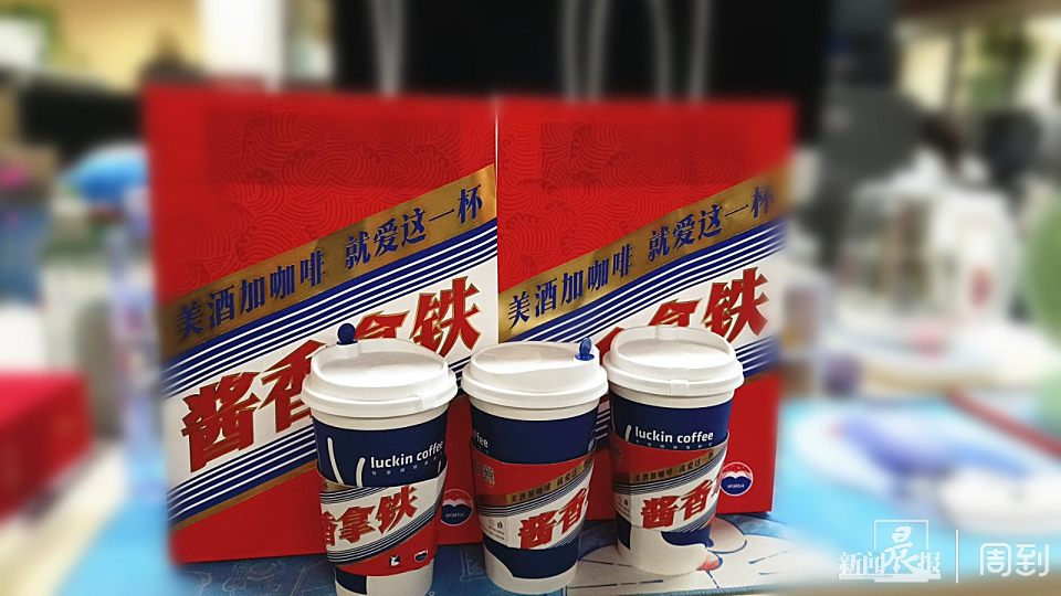 记者发现,“酱香拿铁”的杯套和纸袋上都有非常明显的茅台风格,上面标注着“东方酱香,致敬经典”和“美酒加咖啡,就爱这一杯”。据悉,这款联名咖啡将是限量和短期性供应。