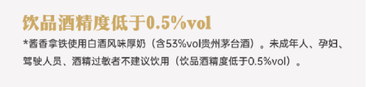 记者注意到,瑞幸咖啡在推文当中表示,“酱香拿铁”使用白酒风味厚奶(含53%vol贵州茅台酒),未成年人、孕妇、驾驶人员、酒精过敏者不建议饮用(饮品酒精度低于0.5%vol)。