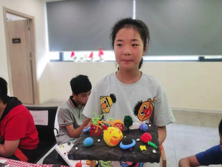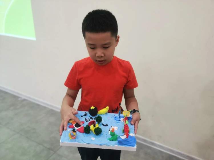 所有的“小设计师”都介绍了自己的作品,有长满苹果的苹果树、中国的航空母舰、中国的宇航员、玫瑰花、生了很多蛋的乌龟……