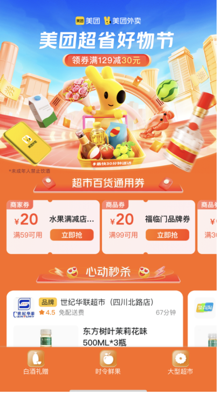 在购物方面,美团外卖9月推出“上海超省好物节”,发放超过3000万元的超市百货消费券,覆盖全城优质商家,超市百货应有尽有。活动期间搜索“超省好物节”即可参加!此外在9.19-9.29期间,更能享受大牌白酒2件8折,正品保障,假一赔十!搜索“保真白酒”即可直达主会场抢购。