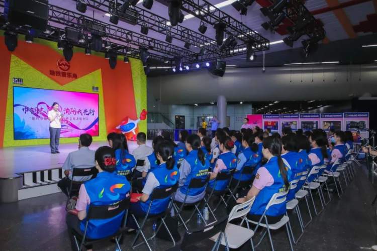 仪式结束后,消防志愿者在地铁人民广场站开展消防安全志愿服务,向市民乘客分发消防安全宣传手册及纪念品,讲解消防安全知识和技能。