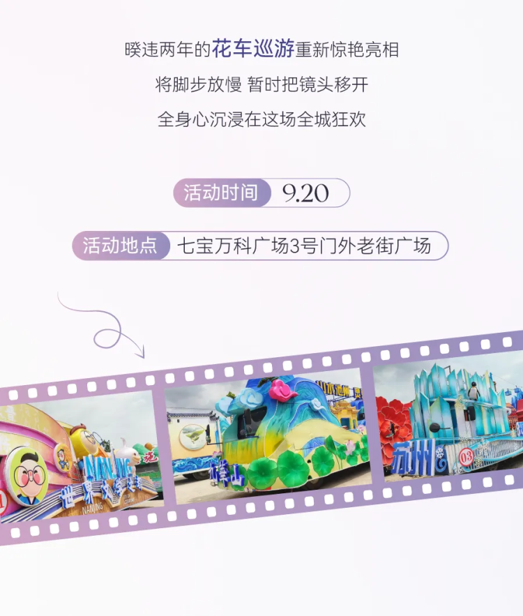 七宝万科广场“以节造势”,推出「乐游上海·惠享金秋」主题活动,开展花车巡展活动,提升“七宝古镇文化节”影响力。